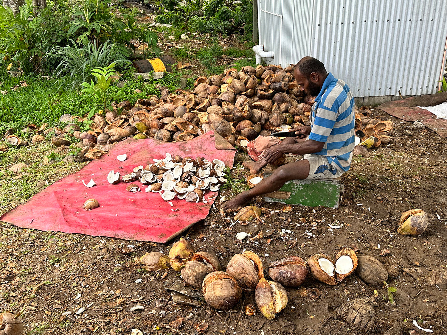 As the plantation is in a fairly remote part of Taveuni Island they employ people from the local villages to come and work – planting coconut, and producing coconut oil, working in the office – earning a living for themselves and their families.